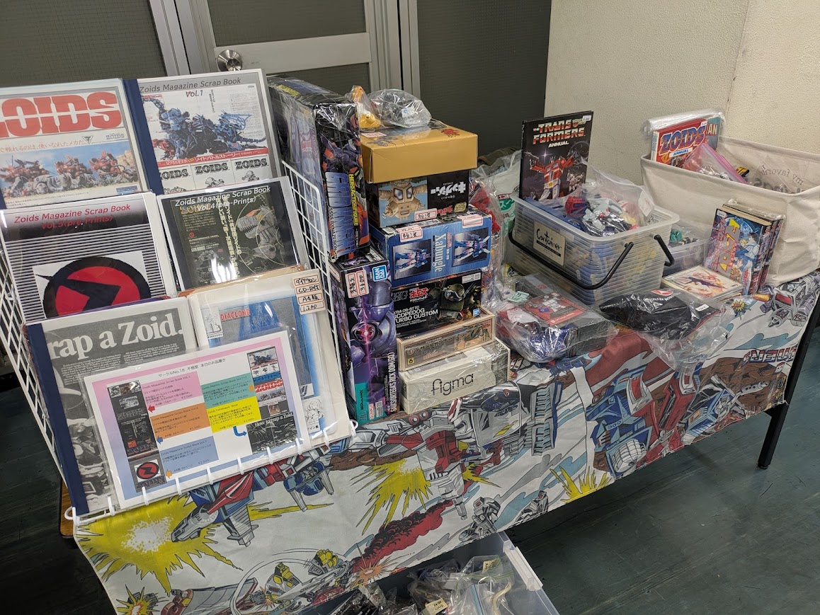 中古のトランスフォーマーとかゾイドなんかを中心に持ち込む予定です。同人誌はトランスフォーマー関連の再販本と、ゾイド関連の再販分と新刊の予定。