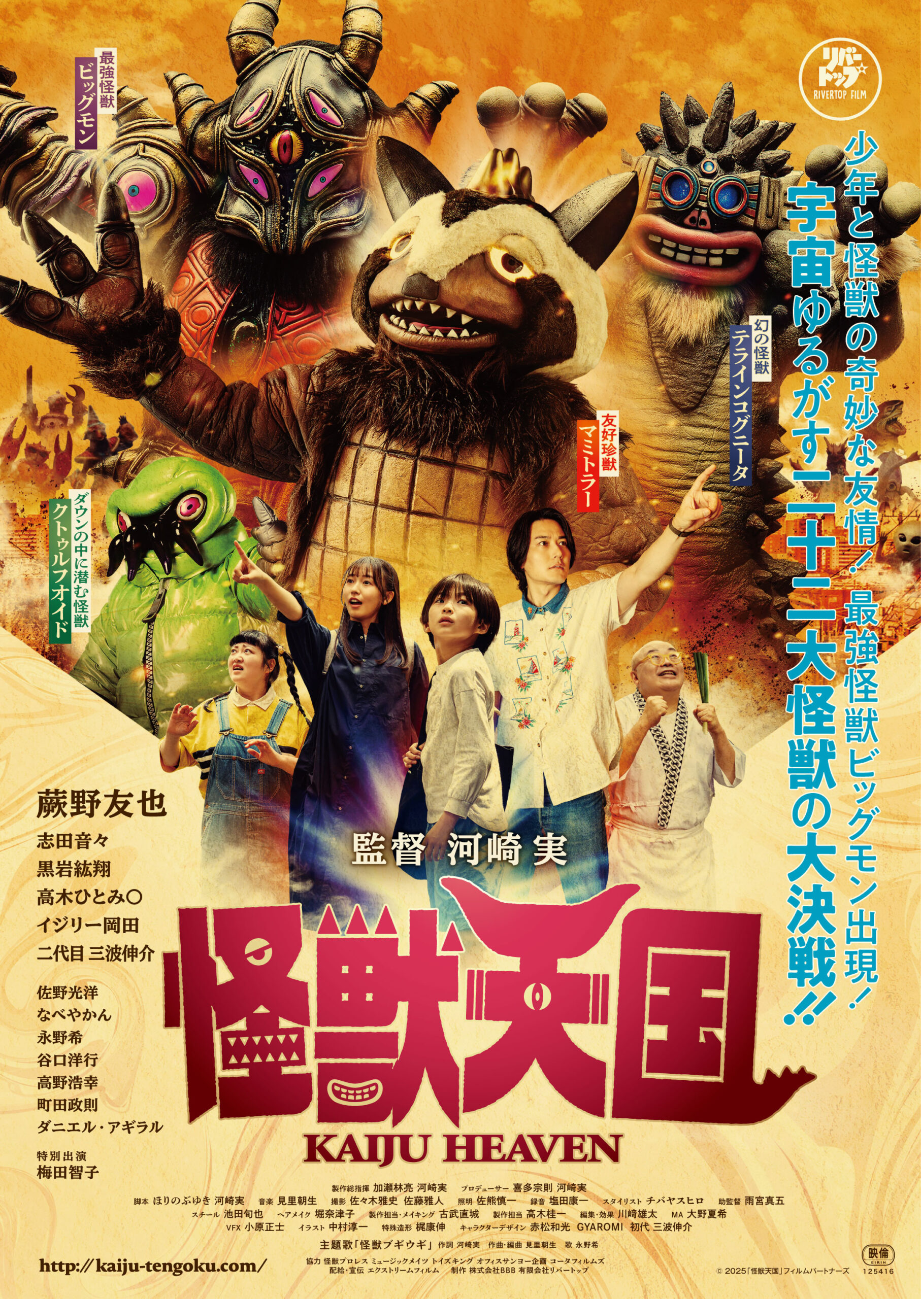 バカ映画の巨匠・河崎実監督の新作映画「怪獣天国」(主演:「ウルトラマンブレーザー」蕨野友也)が1月公開です! 公開記念で、河崎監督のトークあり。登場怪獣(マミトラ―とクトゥルフオイド)たちとの記念撮影もできます。
