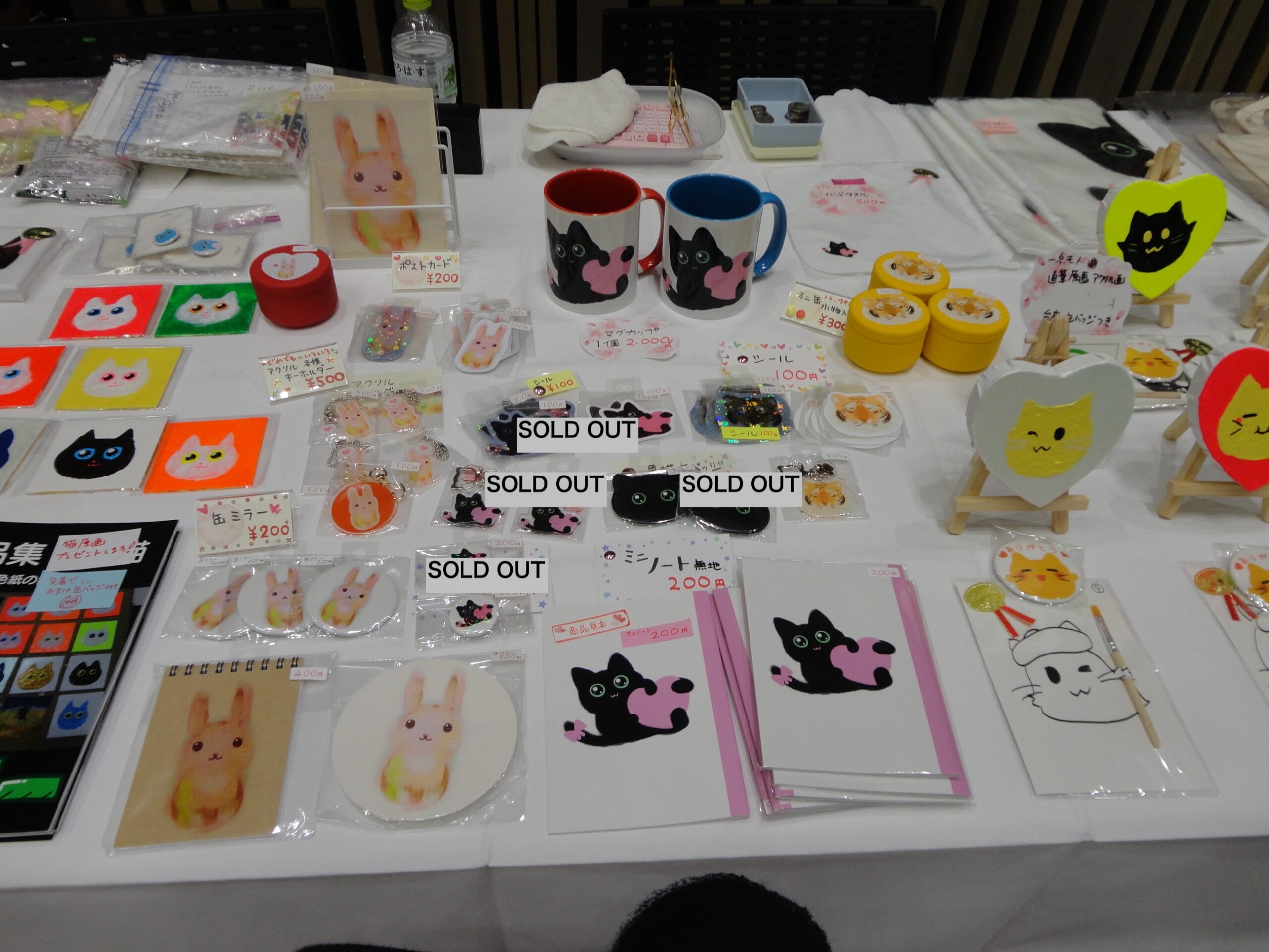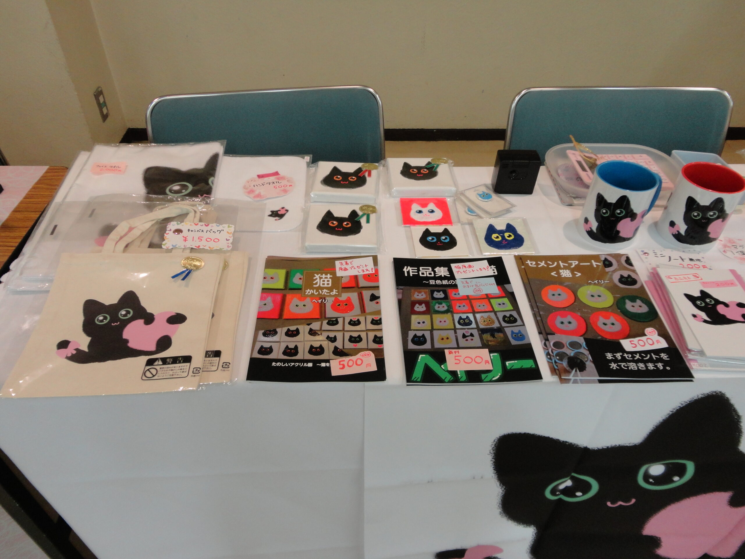 猫イラストアクリル画本持って行きます!「猫かいたよ」「セメントアート<猫>」「作品集豆猫ー豆色紙の猫ー」A5版フルカラー印刷20頁1部500円です。先着でミニ原画が付きます。他にも猫、うさぎグッズ持って行きます(ミニノート、アクリルキーホルダー、ミニバッグ、タオル、マグカップ)アメイジング商店街初参加です!よろしくお願いします!遊びに来てね!