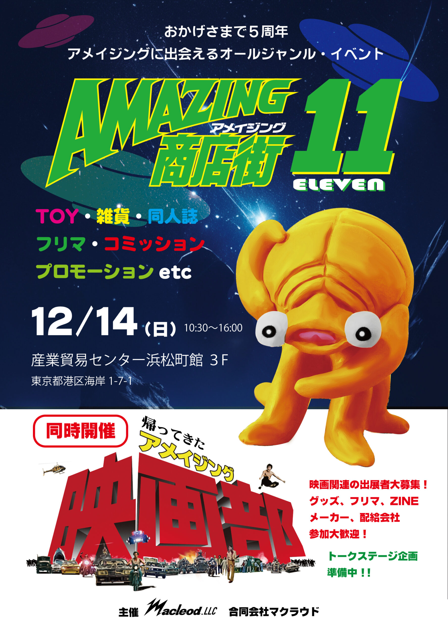 「アメイジング商店街11 + 帰ってきたアメイジング映画部」 開催日時 2025年12月14日(日) 10:30〜16:00会場 東京都産業貿易センター 浜松町館3F主催 合同会社マクラウド 入場料 先行1500円(10 … 続きを読む 今回イベント概要
