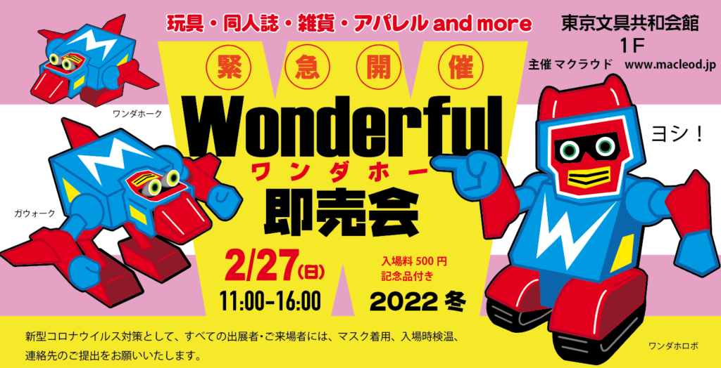 また会期が近づいた段階で、商品内容等に関して情報がありましたら、#ワンダホー即売会 のタグにてTweetしてください。可能な限りRTさせていただきます。