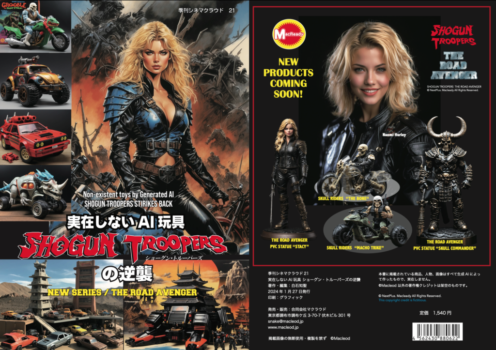 季刊シネマクラウド20は、『誰も知らないSF怪奇映画150』に続き、生成AIを用いたシリーズ第二弾。架空の玩具シリーズ『ショーグン・トルーパーズ』のラインナップ、その映像化作品、コンセプトアートを紹介 …