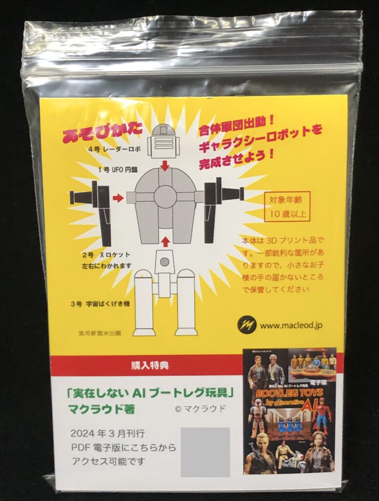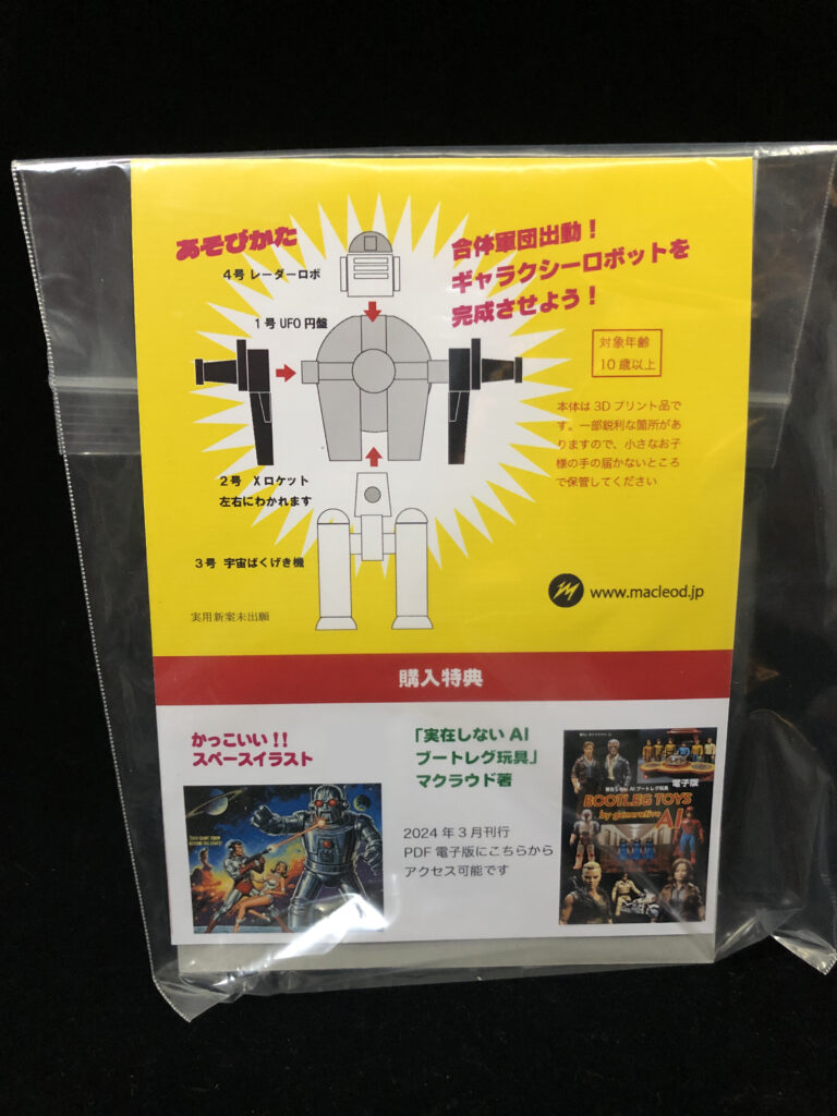 実際の昭和ブートレグ玩具をイメージした「ギャラクシーロボット」とのセット販売は、当方としてもベストな組み合わせだと自負しています。