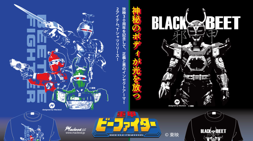 1995年から96年にかけて放映。メタルヒーローシリーズの原点に回帰した人気作品から、正義と悪のインセクトアーマーをTシャツ化!