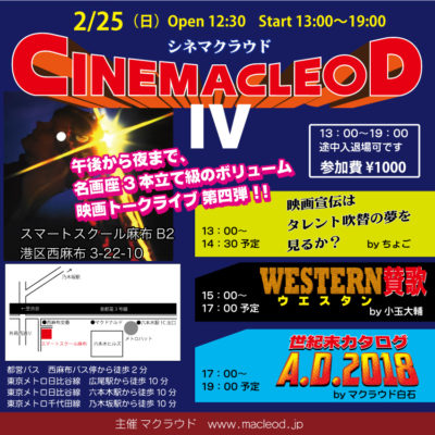 そしていよいよ2/25(日)は都内でシネマクラウド、4回目となります。
